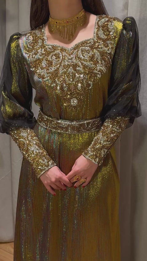 اسم القماش ميتاليك لوريكس لمّاع مع تور شك من الأمام ممكن نغير قماش الشيله