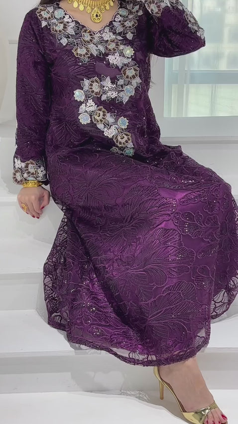 Crafted from exquisite lace fabric in a stunning shade, paired with a matching shaila.