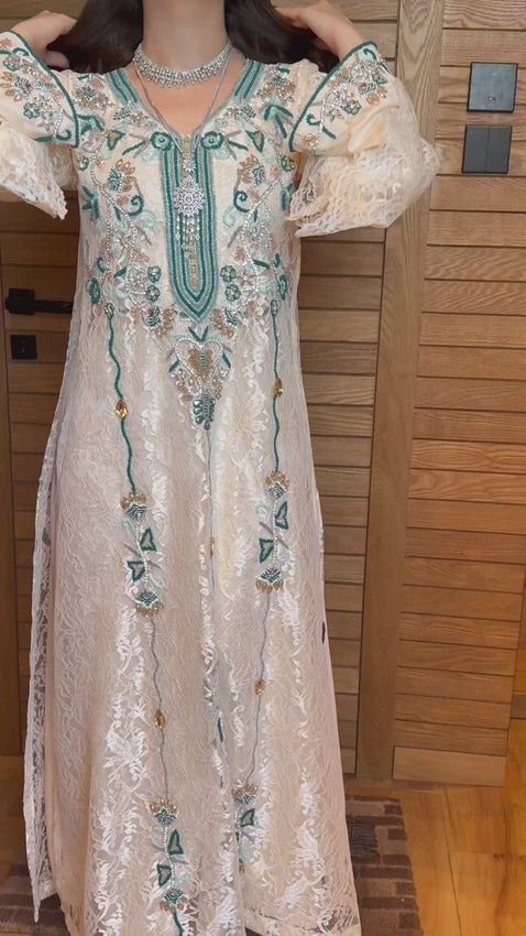 لبسة أنيقة بتصميم هادئ، مزينة بتطريز ناعم يبرز جمالها ويعطيها لمسة فخمة. مناسبة للمناسبات وللاستخدام اليومي الراقي.